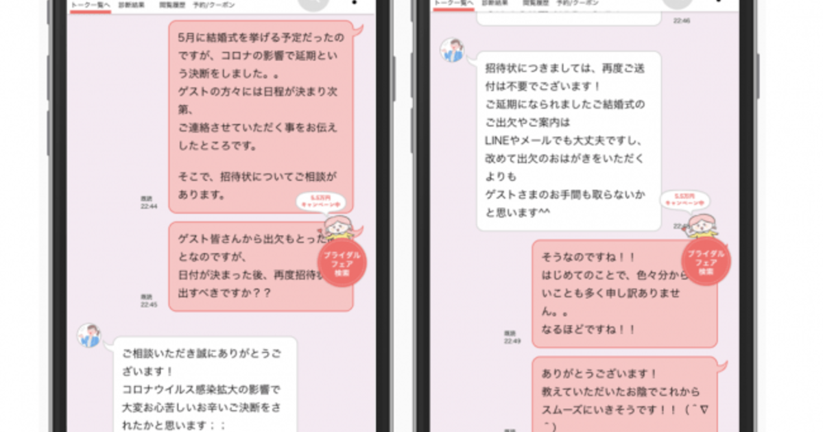 コロナで苦しんでいる花嫁さんにプラコレができること2つ目 全国にいるプラコレチャットアドバイザーが無料でお話相手になる おうちで花嫁チャット相談 をスタートします 冒険社プラコレのプレスリリース