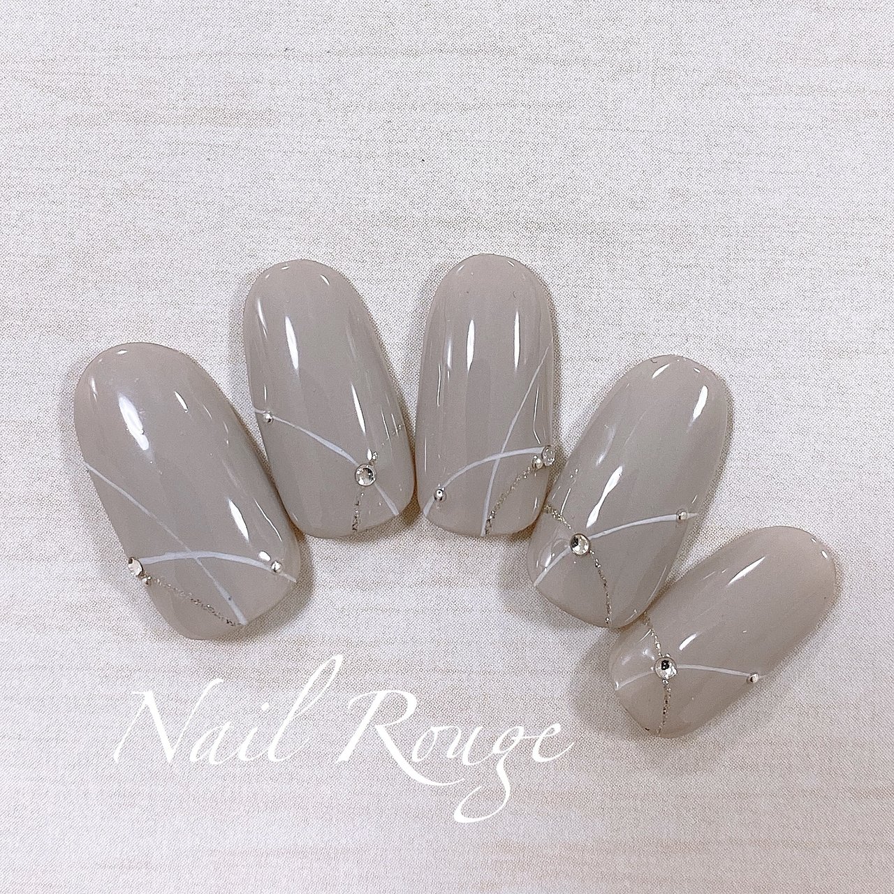 新潟のネイルサロン ネイルズアジュール 新潟市と上越市に4店舗 ハンドベーシックコース グレーネイル ビジュー